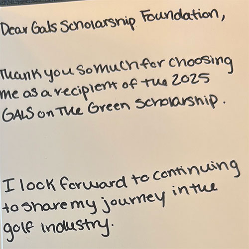 "In the summer of my 7th grade year I decided to go out for the caddy program, like the boys at my bus stop. Caddying was only the start of my love and passion for the game of golf. It pushed me outside my comfort zone, exposed me to different sides of the golf industry and introduced me to many of my mentors. I really started to love the game when I started playing. I am a firm believer that golf should not only be accessible to people who are good at the game, but also to people who simply enjoy it. Receiving the GALS scholarship will allow me to attend Penn State University for Professional Golf Management and support me as a female in the golf industry."